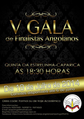 A Associação de Estudantes Angolanos em Portugal (AEA-P) vem apresentar a V Gala de Finalistas Angolanos em Portugal que visa reconhecer todos os finalistas e premiar os alunos de mérito do corrente ano lectivo.